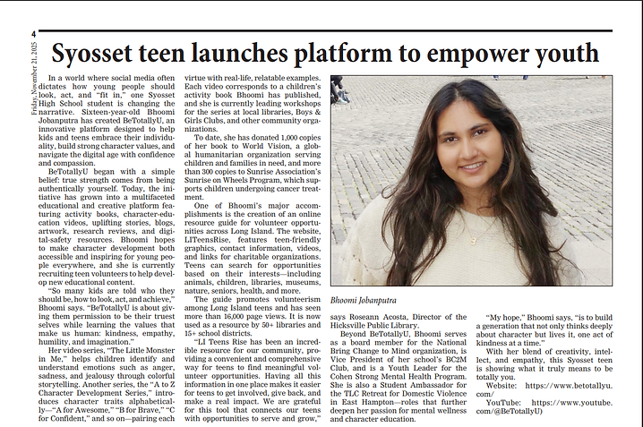 Bhoomi's story was featured in several newspapers across Long Island...